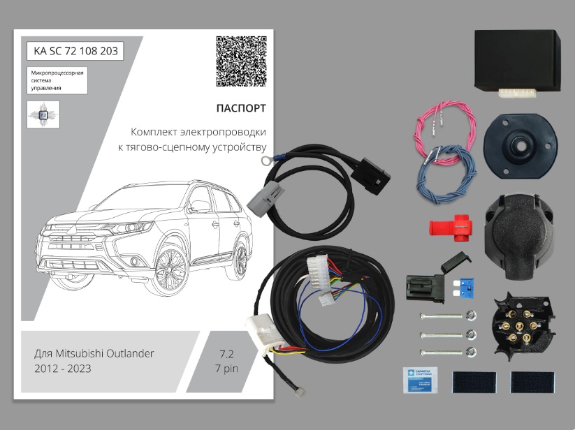 Штатная электрика ТСУ предназначена для подключения к автомобилю определенной марки, модели, годов выпуска. Электрика подключается pin-to-pin, передает сигналы задних фонарей на фонари прицепа, при этом защищая электрику автомобиля от короткого замыкания на прицепе. Комплект состоит из блока управления, жгута проводов со штатными колодками, розеткой ТСУ 7-pin, установочным комплектом.