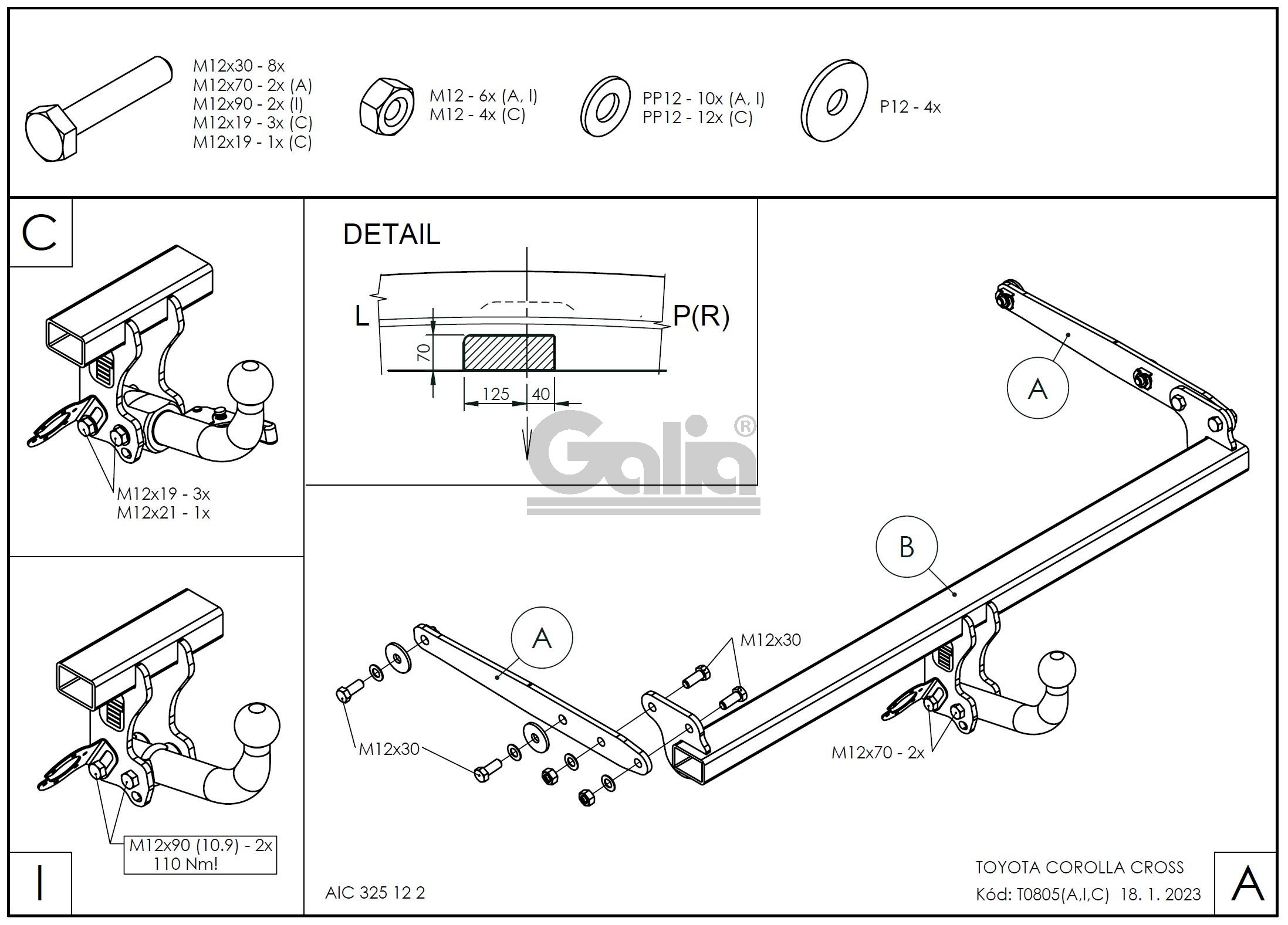Оригинальный фаркоп Galia T080A от официального дилера Galia в Москве и Санкт-Петербурге. Купить фаркоп Galia T080A с типом шара A (F20) и максимальной тяговой нагрузкой 1200 кг. с установкой в Москве и Санкт-Петербурге и с документами для ГИБДД. Установка фаркопа на Toyota Corolla Cross 2022- возможна в сертифицированном сервисном центре с гарантией на работу. Сертификат Galia T080A